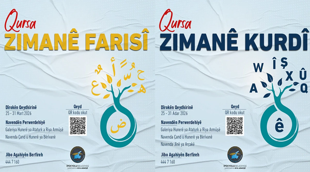[15:51, 25.03.2026] +90 552 379 96 83: Eşit, özgür ve çok dilli yaşam hakkını esas alan yerel yönetim anlayışıyla çalışmalarını sürdüren İpekyolu Belediyesi, kültürel çeşitliliği güçlendirecek önemli bir adım daha attı. Kültür ve Sosyal İşler Müdürlüğü, Kürtçe ve Farsça dil kursları için kayıt sürecinin başladığını duyurdu.
