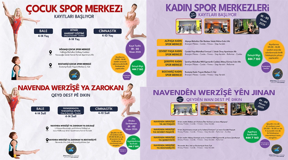 KADIN VE ÇOCUK SPOR MERKEZLERİ KAYITLARI BAŞLIYOR!