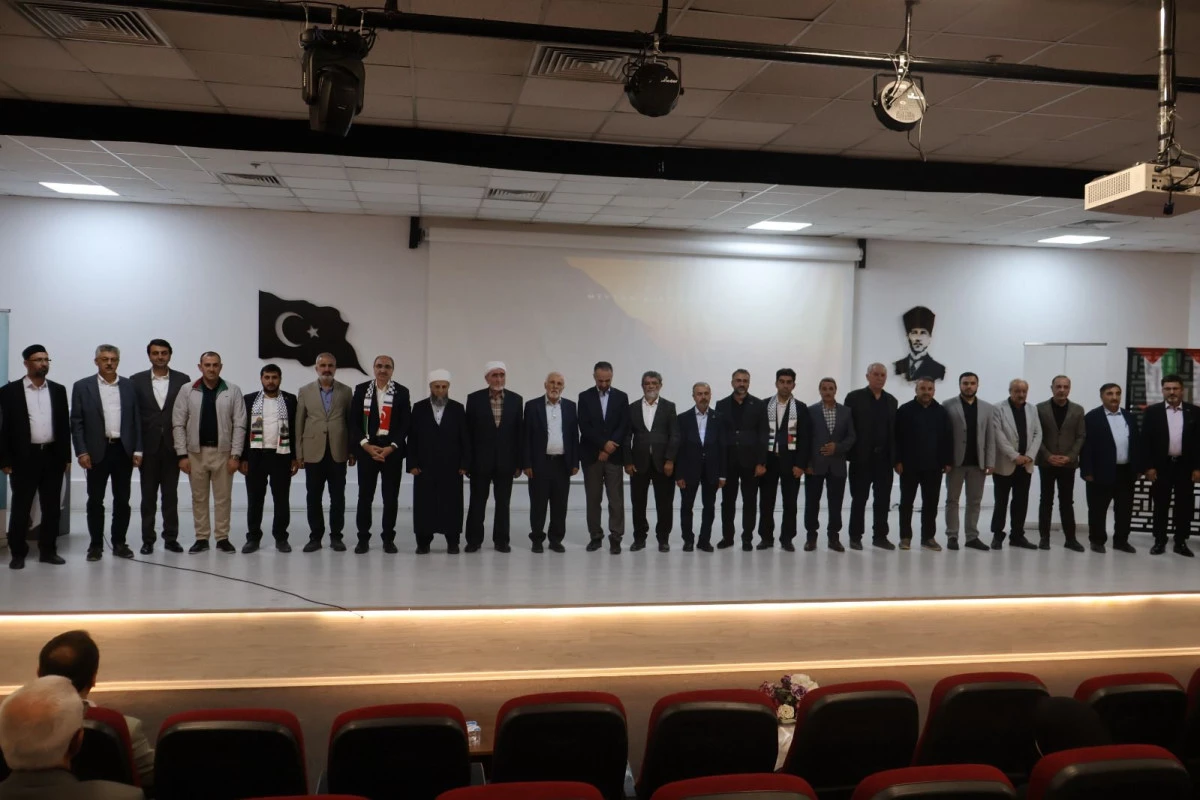 Konuşmacılardan Prof. Dr. M.Halil Çiçek konuşmalarına Gazze için mücadele eden başta Gazze halkına, mücahitlere ve Dünya genelinde onlara maddi ve manevi destekte bulunanlara muhabbet ve şükranlarını sunarak başladı